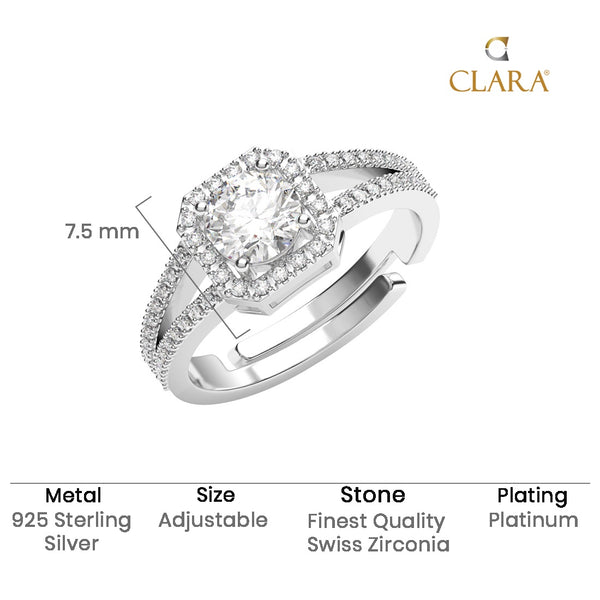 Size Adjustable Ring is made in pure 925 Real Sterling Silver. 925 stamp will be on every product. Finest Quality Swiss Zirconia - As brilliant As Diamond. Sparkle of our specially cut zirconia is very much equivalent to Real Diamond and even professionals can not differentiate with naked eyes whether it is Zirconia or Diamond. 2 Microns Thick Nickel free Platinum Plating is done to give long lasting shine. Product comes in a very elegant gift box with CLARA Authenticity Card. Size of this Ring is easily adjustable. Any Women or Girl can wear this Ring without any issue of size and fit.