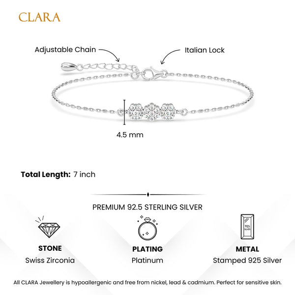 Size Adjustable Bracelets is made in pure 92.5 % Real Sterling Silver. 925 stamp will be on every product. Swiss Zirconia - As brilliant As Diamond. Sparkle of our specially cut zirconia is very much equivalent to Real Diamond and even professionals can not differentiate with naked eyes whether it is Zirconia or Diamond. 2 Microns Thick Nickel free Platinum Plating is done to give long lasting shine. Product comes in a very elegant gift box with CLARA Authenticity Card. Size of these Bracelets is easily adjustable. Any Women or Girl can wear these Bracelets without any issue of size and fit.